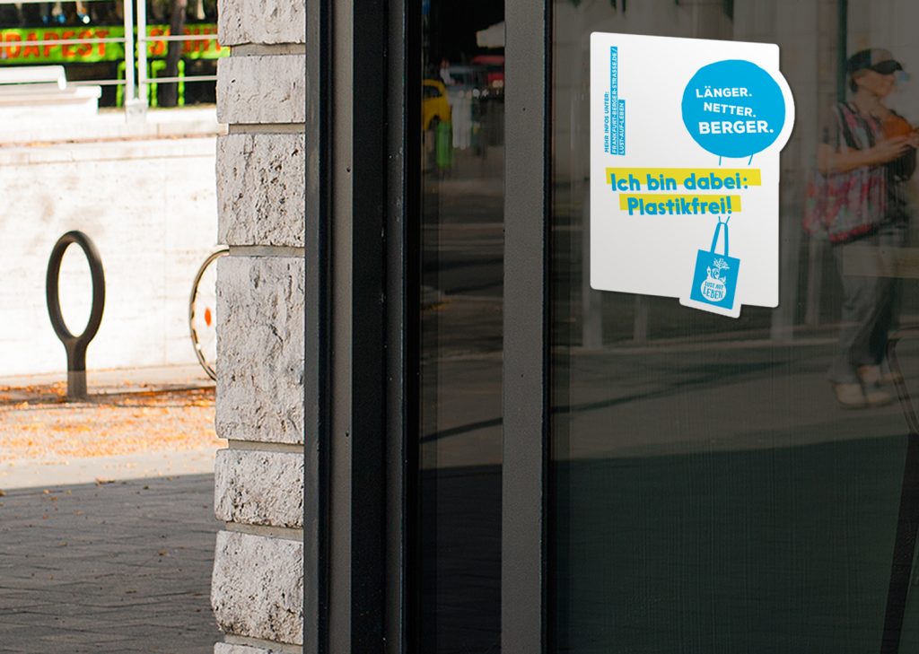1. Die Einbindung der Händler auf der gesamten Berger Straße, auch derjenigen, die noch nicht auf Plastiktüten verzichten können. Sie informieren über Schilder die Kunden bezüglich des Bestrebens, auf Plastiktüten zu verzichten und bieten eine plastikfreie Alternative an, unsere Berger Tasche. Die Stofftasche und Hinweisschilder werden an die Mitglieder und mitmachenden Betriebe ausgehändigt. Als Besonderheit werden zudem 1000 Taschen lokal in Kooperation mit dem Schnappsack in einem Schaufenster auf der Berger Straße 288 im KaufhausHESSEN produziert. Ein Badge an der Tür zeichnet die mitmachenden Betriebe aus.