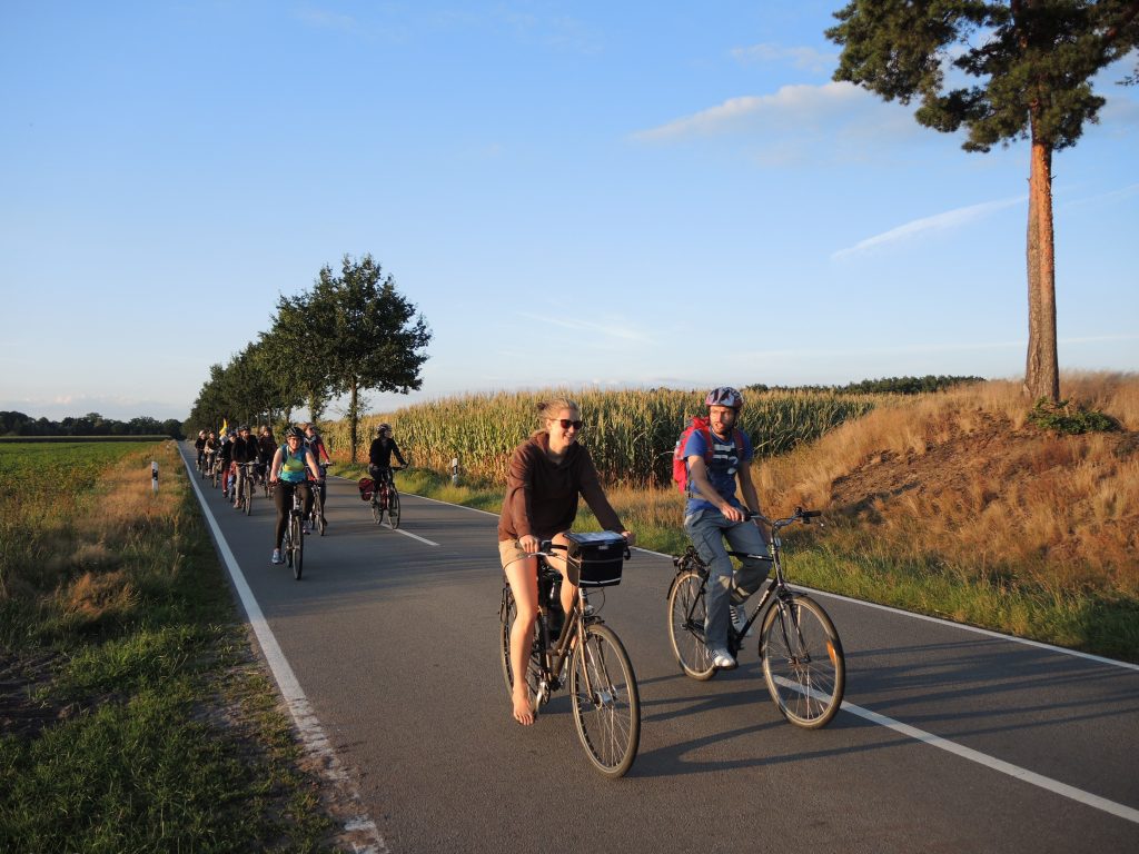 Die Radler übernachten in großen Zelten. Gekocht wird für die Gruppe gemeinsam. Natürlich wird aber auch der Spaß auf dem Rad nicht zu kurz kommen. Man kann dabei die Gedanken schweifen lassen oder mit den Mitradelnden über die Eindrücke der besuchten Stationen diskutieren. Nach dem Radeln können die Sommerabende am Lagefeuer ausklingen.