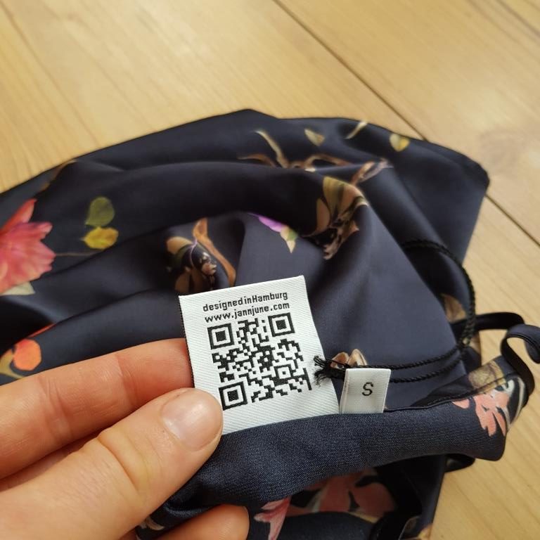 Auf ihren Produkten hat das junge Label Jan’n June einen scanbaren Code angebracht. Sie selbst seien aufgrund der Kosten nicht mit einem „Eco Label“ zertifiziert, doch so können die Kundinnen und Kunden, wenn sie es denn möchten, die Wege  des entsprechenden Kleidungsstücks nachvollziehen.