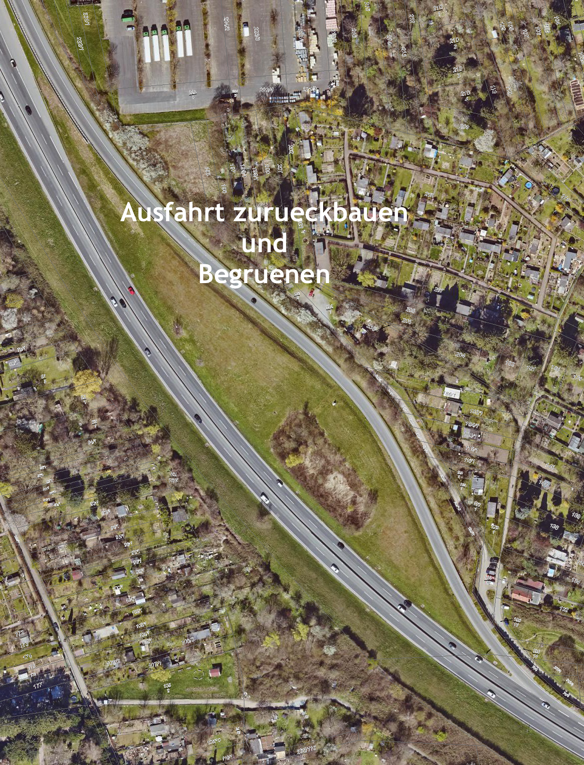 „Rückbau der durch Alleenspangenplanung historisch bedingt überlangen Ausfahrt von der A661 nach Bad Vilbel auf die verkehrstechnisch notwendige Mindestlänge. Der von mir vorgeschlagene Rückbau der, historisch bedingt, überlangen Ausfahrt von der A661 nach Bad Vilbel betrifft ausschließlich Flurstücke die sich im Besitz des Bundes -dem Autobahn Bundesamt- befinden. Ich bin gespannt ob der Bund zum Rückbau nicht mehr benötigter Trassen, auch im Sinne des Bodenschutzgesetzes, bereit ist. Ich erwarte wenig Bereitschaft und nur das übliche Totschlagsargument: “für den Ausbau der A661 nicht projektnotwendig“.“