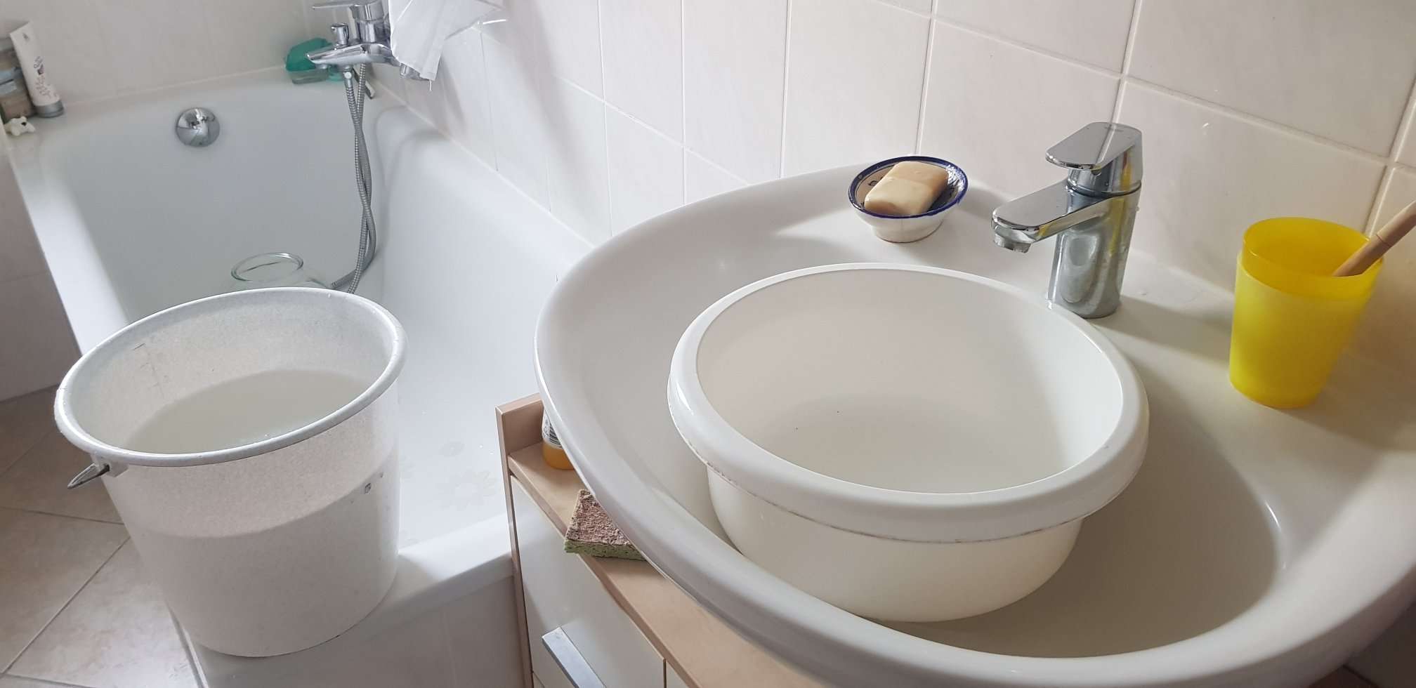 Jedenfalls befinden sich in der Wohnung meiner Eltern unter jedem Waschbecken Wannen, die das Brauchwasser auffangen. Ist die Wanne voll, kommt sie in einen größeren Eimer und wird für die Toilettenspülung oder zum Blumengießen genutzt.