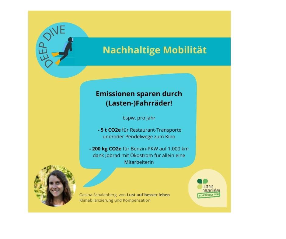 Allein für eine Mitarbeitende können durch die Umstellung aufs Lastenrad statt einem Benziner-PKW  200 kg CO2e auf 1.000 km mit dem Jobrad (aufgeladen mit Ökostrom) gespart werden. Auch hilft es, sich bewusst zu machen, dass Lastenräder schon einmal etabliert waren – und dann vom Auto verdrängt wurden. Wir entdecken sie gerade nur wieder und müssen ihnen Platz in unseren Städten einräumen! Außerdem gibt es Jobrad – im Gegensatz zu bspw. Jobtickets – auch für Kleinstbetriebe und Selbstständige. Wir von Lust auf besser leben machen auch mit 🙂