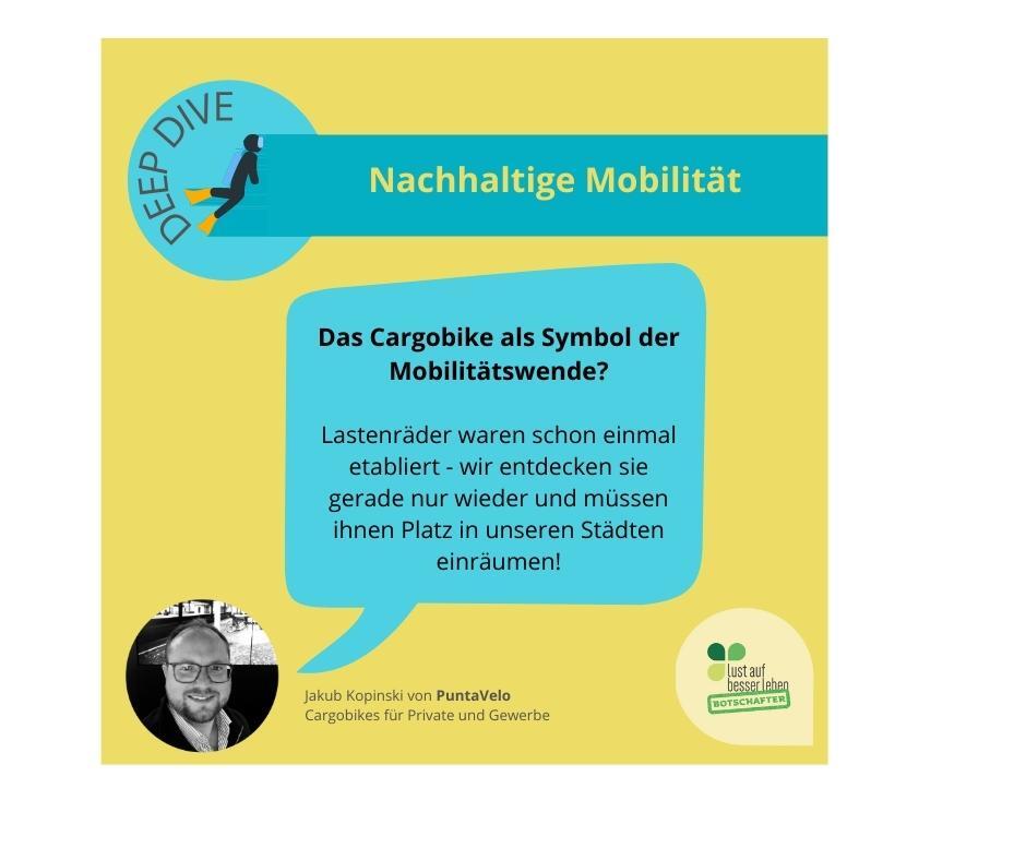 Im Rahmen unseres Botschafter:innen-Klubs veranstalten wir sogenannte „Deep Dives“ (digitale Weiterbildungen) zu Themen, die unsere Netzwerkmitglieder interessieren. Beim letzten Treffen gab es Mobilitäts-Input von