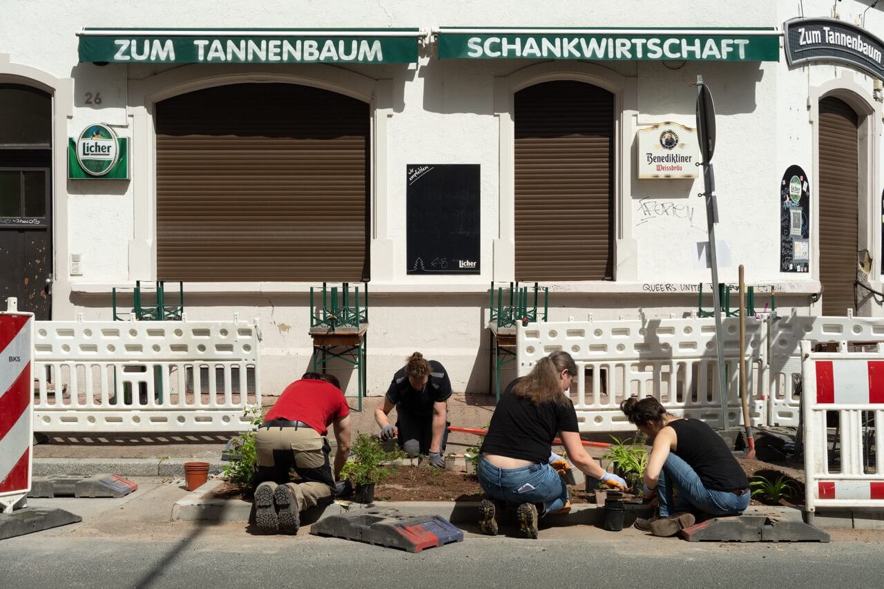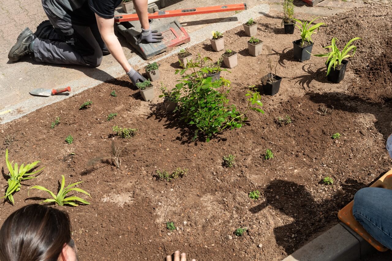In Kürze werden hier noch Kübel aufgestellt, in denen die Pflanzen etwas höher wachsen können. Da besonders im Sommer viel gegossen werden muss, sucht die Initiative noch Gießpat:innen.