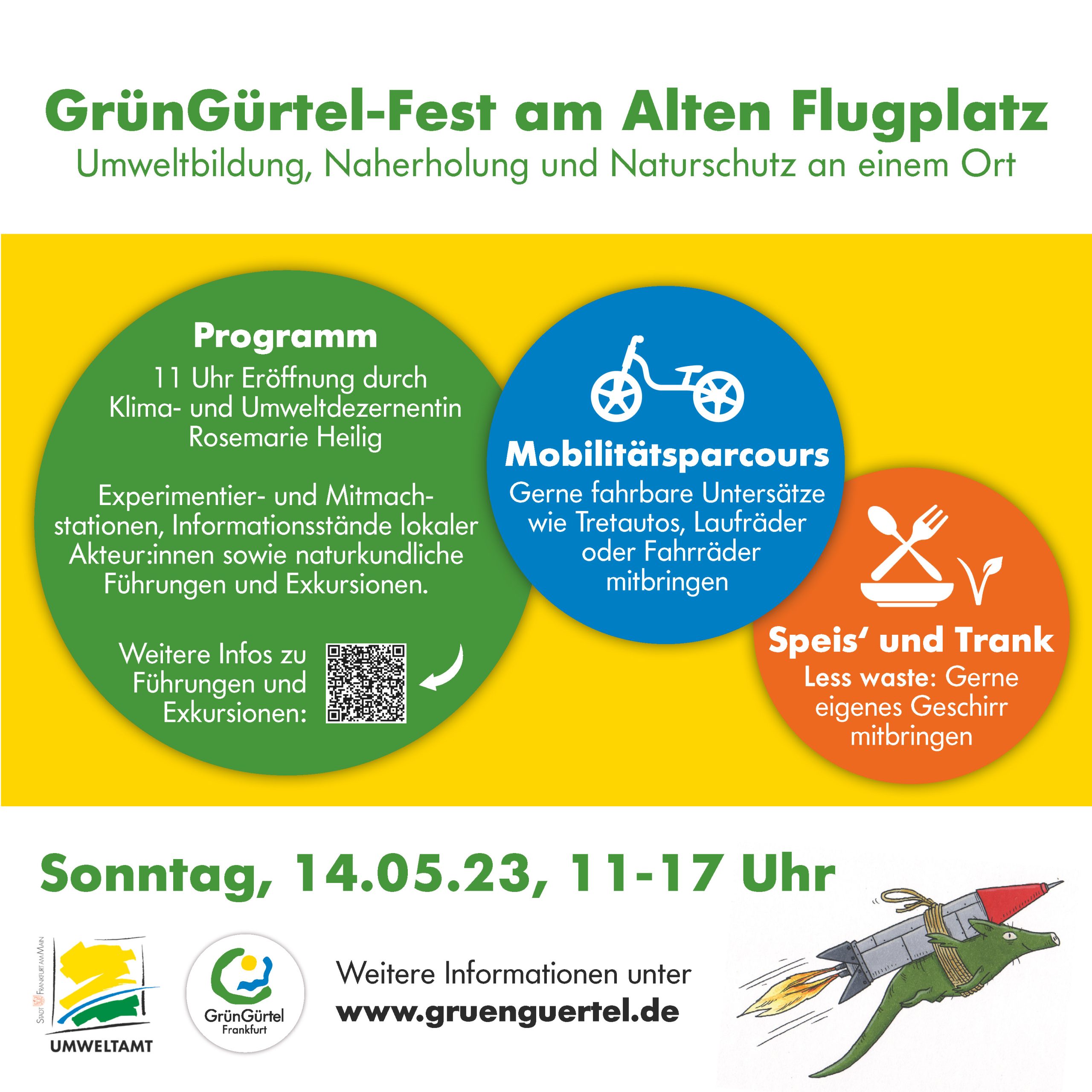 Im Auftrag des Umweltamtes der Stadt Frankfurt am Main konzipierten, planten und organisierten wir das „neue“ Format GrünGürtel-Fest auf dem Alten Flugplatz in Bonames.